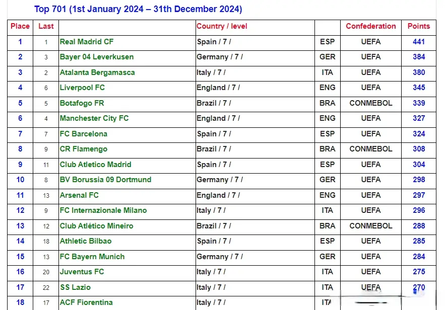 你的位置:极速飞艇玩法分析 > 极速飞艇玩法分析介绍 > 2024世界球队排名:皇马第1,巴萨第7,海港第272,泰山呢